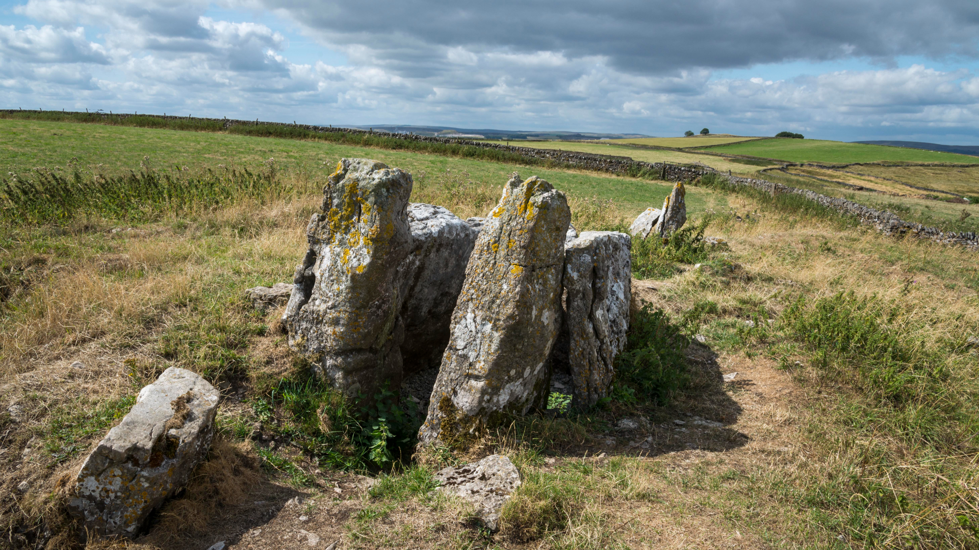 You can also spot earlier burial mounds in the landscape, which tend to be oval or rectangular in shape, rather than round. These are known as long barrows, or long cairns, and they’re from an even earlier period – the late Stone Age, or Neolithic. These were used as communal burial sites and are the oldest monuments you can see in the landscape (more than 1,000 years older than the stones at Stonehenge). Wayland’s Smithy in Oxfordshire, West Kennet Long Barrow in Wiltshire, Gib Hill Barrow in Derbyshire and Cairnholy in Dumfries and Galloway are all fine examples. They are more than 5,500 years old and still standing.