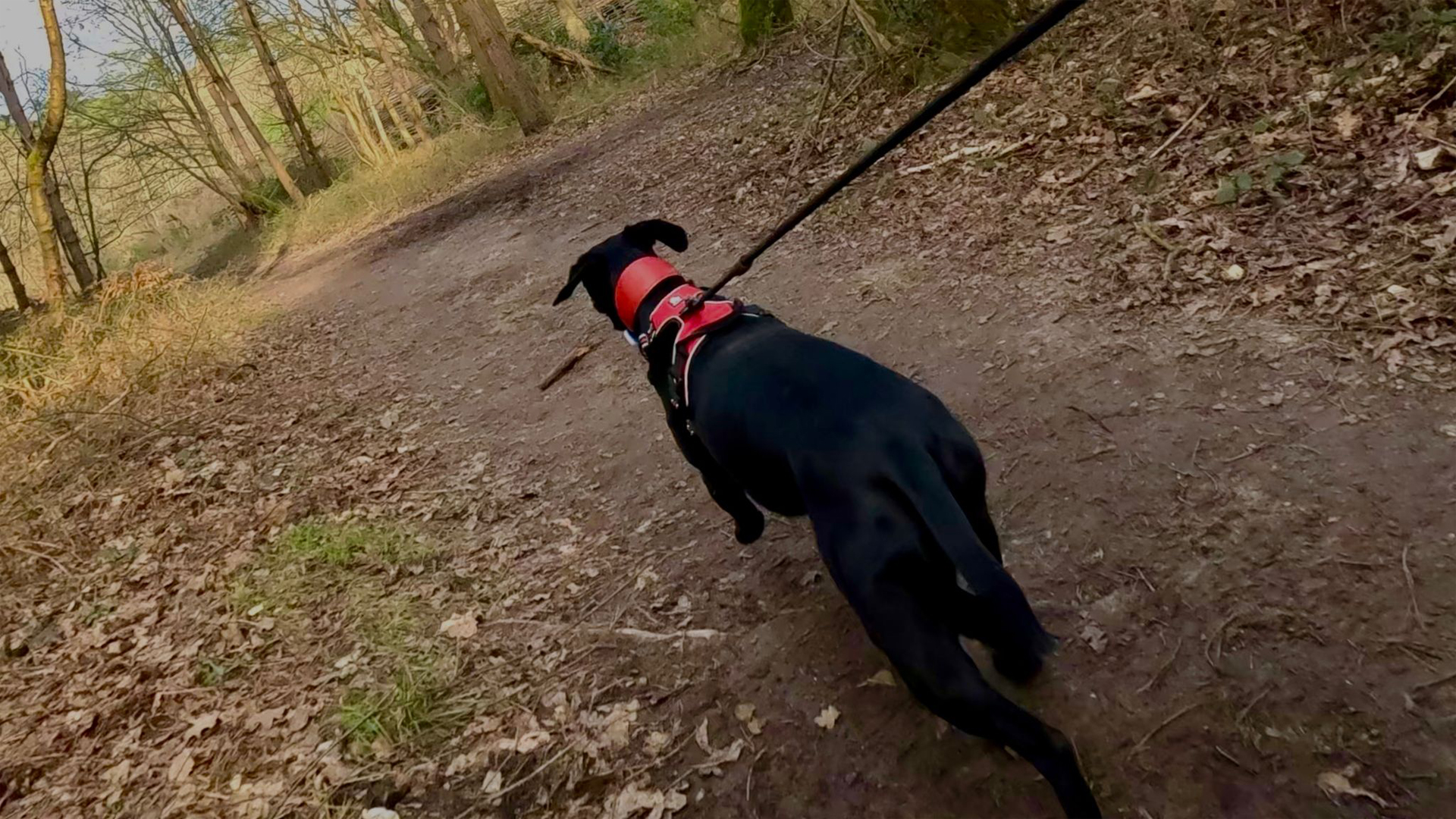 I researched the equipment and canicross basics. Finley is quite a small dog so a snug well-fitting harness was required. There are a huge amount of these products to wade through but we eventually found a good robust item that wouldn’t cause any chafing while he was powering us along on our (hopefully) record-setting runs.